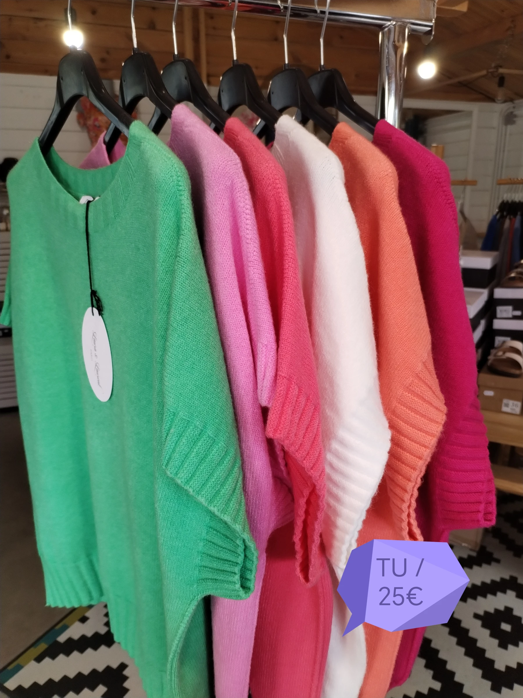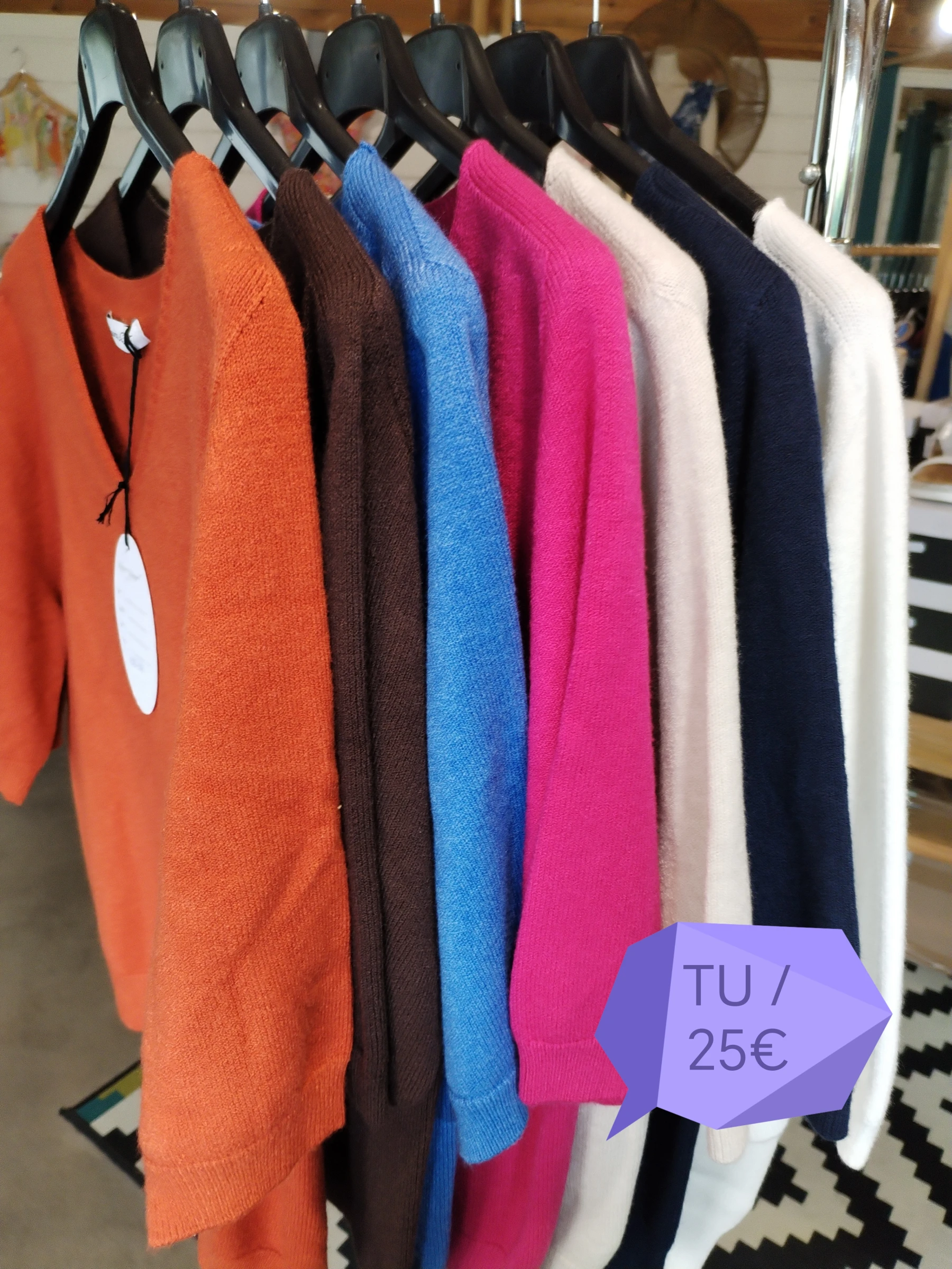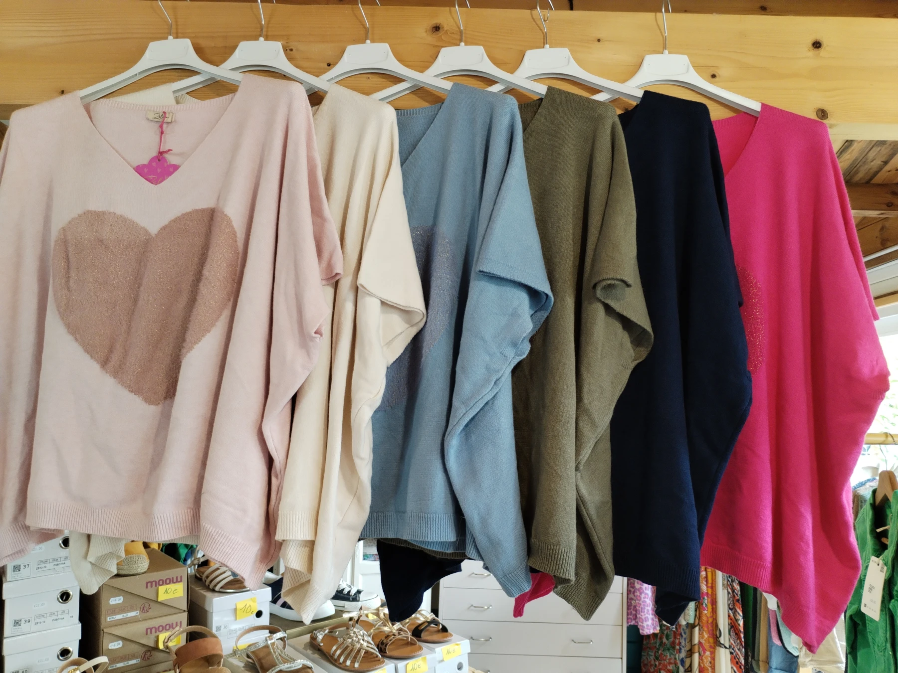 Découvrez notre gamme de pulls pour femme en vente chez Les Folies d'Elise, situé à 2721 route des Marronniers hameau de Miquetot, Angerville-la-Martel.